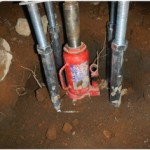 長崎県長崎市の家の傾き工事の様子です。
