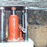 こちらの工事では22本のジャッキを設置し、1ヶ月の工期で行いました。